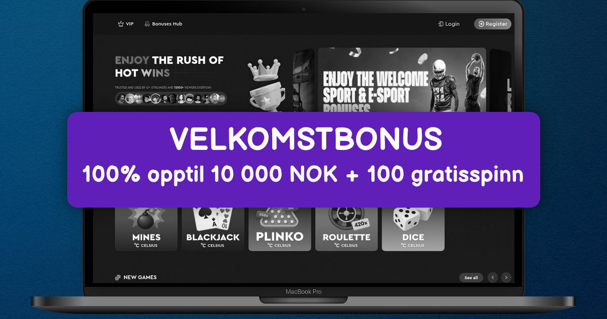 Celsius Casino ønsker deg velkommen til Norges mest spennende online casino opplevelse. Som ny spiller kan du sikre deg en generøs velkomstbonus på 100% opptil 5000 kr på ditt første innskudd, med rimelige omsetningskrav på bare 35x. Casinoet opererer under en Malta Gaming Authority lisens og tilbyr deg som norsk spiller unike fordeler som lynraske utbetalinger innen 24 timer, døgnåpen kundestøtte på norsk, og et imponerende spillutvalg. Opplev over 2000 spilleautomater med rask utbetaling, live casino spill med ekte dealere, og klassiske bordspill fra ledende leverandører som NetEnt, Pragmatic Play og Evolution Gaming. Celsius Casino er fullt optimalisert for mobil, slik at du kan nyte favorittspillene dine hvor som helst. Vi aksepterer alle populære betalingsmetoder i Norge, inkludert Vipps, bankkort og e-lommebøker, med sikre og raske transaksjoner som gjør din spillopplevelse sømløs og trygg.